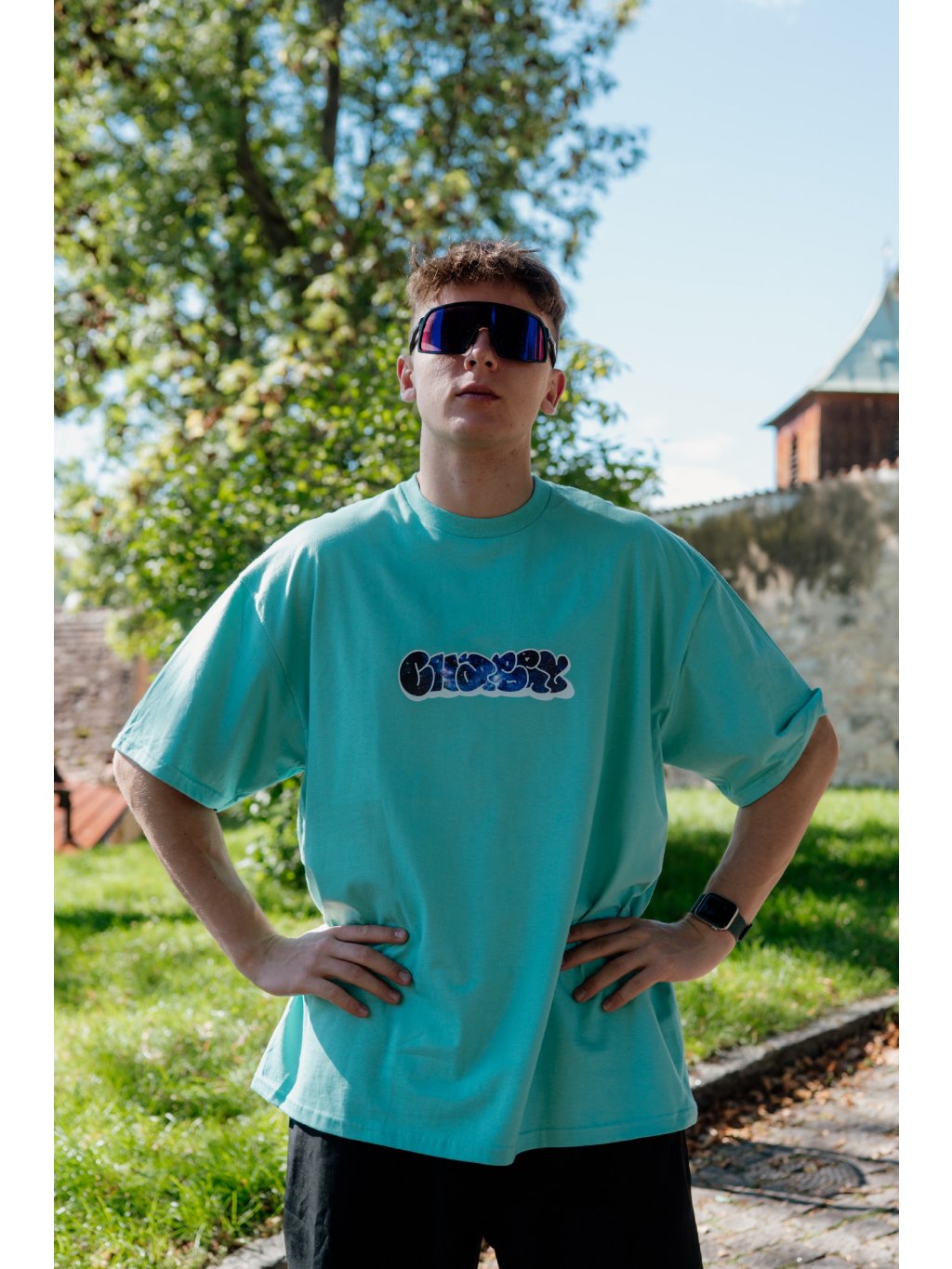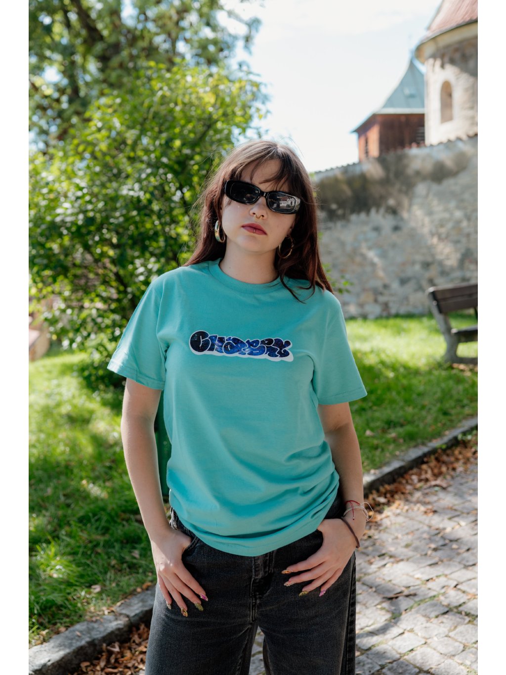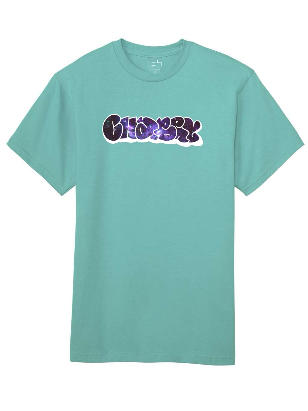 Mátový triko s fialovým "galaxy" throwupem CHABRY, pro všechny milovníky vesmíru.