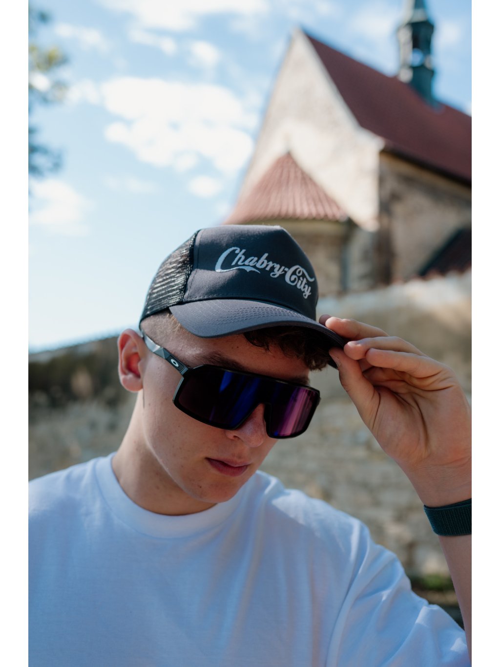 Klasická šedo-černá truckerka s vyšitym bílym CC logem CHABRY CITY.