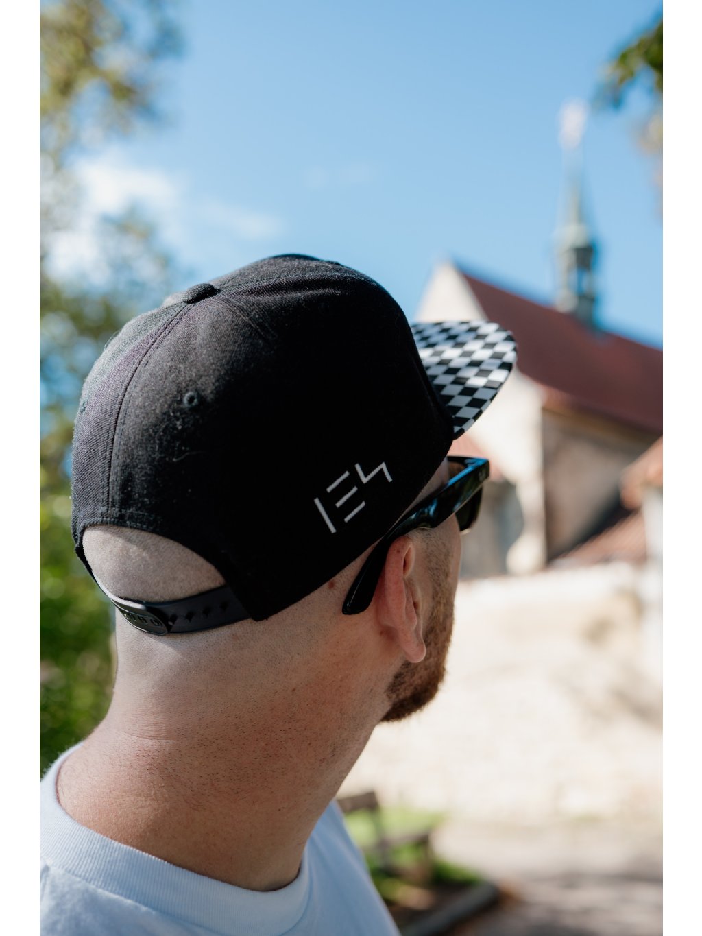 Černej snapback s šachovnicovým kšiltem, ale Vans to není, jasný pane! Klasickej tvar, 6 panelů, snapback nastavitelný zapínání pro malý i velký palice. Tu hnusnou samolepku z kšiltu opět sundám a dám tam jinou hnusnou samolepku, ale chaberskou!